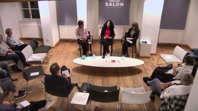 Bei Martin Wassermair waren Brigitte Hütter (Rektorin Kunstuniversität Linz) und Stefan Koch (Rek