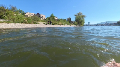 Wassertemp 11-12°C und blauer Himmel, kräftiger Westwind.