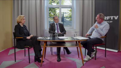 Bei Martin Wassermair waren Brigitte Hütter (Rektorin Kunstuniversität Linz) und Stefan Koch (Rek