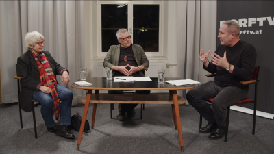 Bei Martin Wassermair waren Ursula Baatz (Autorin, Journalistin) und Airan Berg (Theatermacher, Z