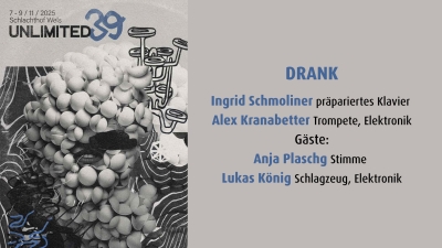 Drank: Ingrid Schmoliner (präpariertes Klavier), Alex Kranabetter (Trompete, Elektronik)