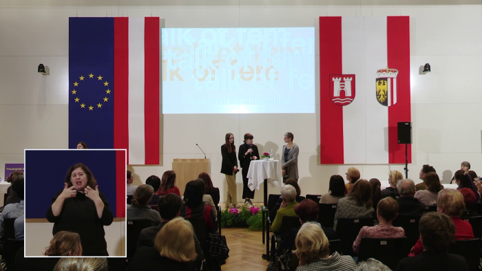 Am 27. Feb. 2020 | 19:00 Uhr + talk of fem - Verleihung des Frauenpreises der Stadt Linz 2020 Created at 25. Feb. 2020 5688 Ansichten by dorftv BeschreibungEmbed Der Internationale Frauentag wurde 1910 auf der 2. Internationalen sozialistischen Frauenkonferenz in Kopenhagen als Kampftag für Frauenrechte beschlossen. Seither wird der 8. März weltweit als Internationaler Frauentag begangen. Nach wie vor ist die tatsächliche Gleichstellung von Frauen und Männern in unserer Gesellschaft Wunschdenken. Tradierte Rollenbilder und Zuschreibungen bestimmen auch heute noch weitgehend das Denken und Handeln. Die Förderung von Frauen in den unterschiedlichsten Bereichen ist eine gesellschaftspolitische Notwendigkeit für mehr Chancengerechtigkeit der Geschlechter.Deshalb wird jedes Jahr im Rahmen der Veranstaltung „talk of fem“ ein Projekt ausgezeichnet, das sich durch herausragende Aktivitäten und besonderes Engagement für Frauen und Mädchen hervorhebt. talk of fem Frauenpreis der Stadt Linz 27. Februar 2020, 19 Uhr Altes Rathaus, Gemeinderatssaal Programm Begrüßung Verleihung des Frauenpreises der Stadt Linz durch Frauenstadträtin Mag.a Eva Schobesberger Moderation: Mag.a Jutta Reisinger, Frauenbeauftragte der Stadt Linz Gebärdendolmetsch: Mag.a Stefanie Gunesch https://www.linz.at/frauen/4927.php Share & Embed Embed this Video Link to this Video Add new comment Kommentar verfassen login or register to post comments. DORFTV. link 400 Videos, 5 Members #Tags Stadt Linz Eva Schobesberger Jutta Reisinger Stefanie Gunesch Frauenbüro talk of fem Frauenpreis Transkription More from Channel A performative talk-discussion-news-broadcast-concert party thing with Utopic tones. True Blue News - live aus dem Salzamt DORFTV. link since 8 years 8 months WE ARE UNSTOPPABLE - ANOTHER WORLD IS POSSIBLE! Fridays for Future Linz | Weltweiter Klimastreik DORFTV. link since 6 years 9 months Der ganze MoE an einem Stück, ohne Interpretation, ohne Pause und ohne Regie, Musils Lebenswerk ü Marathonlesung: Musils Mann ohne Eigenschaften an einem Stüc DORFTV. link since 6 years 9 months 01:46:08 Sevdah an der Donau Lied der Begegnung Sevdah an der Donau / Sevdah na Dunavu I Teil 1 DORFTV. link since 8 years 2 months 02:10:56 Anlässlich des Ferienbeginns organisiert die AIDSHILFE OBERÖSTERREICH am Linzer Taubenmarkt zum s Live vom Turteln am Taubenmarkt 2018 - Aidshilfe OÖ DORFTV. link since 7 years 5 months 00:38:56 Am Weltflüchtlingstag finden europaweit viele Veranstaltungen statt, die das Bewusstsein für den VIELFALT.in.CONCERT 2018 mit Lalá Vocalensemble, Sabri Opak DORFTV. link since 7 years 5 months 00:38:49 Am Weltflüchtlingstag finden europaweit viele Veranstaltungen statt, die das Bewusstsein für den VIELFALT.in.CONCERT 2018 mit 1er Koda & Bauer Max, Moussa Ké DORFTV. link since 7 years 5 months 00:53:31 Am Weltflüchtlingstag finden europaweit viele Veranstaltungen statt, die das Bewusstsein für den VIELFALT.in.CONCERT 2018 mit Kravali, Misses U, Def ILL aka DORFTV. link since 7 years 5 months 01:22:27 Am Weltflüchtlingstag finden europaweit viele Veranstaltungen statt, die das Bewusstsein für den VIELFALT.in.CONCERT 2018 mit Average, La Oona Montana, CHiLL DORFTV. link since 7 years 5 months 00:47:56 Wir drehen eine Runde am Festivalgelände in Ottensheim, beobachten die letzten Vorbereitungen vor Ottensheim Open Air 2018 | Rundgang am Festivalgelände DORFTV. link since 7 years 5 months 00:06:00 "Zur Lage" Zur Lage | Es liest Judith Gruber-Rizy - Eine Veranstaltung DORFTV. link since 7 years 7 months 00:05:54 "Zur Lage" Zur Lage | Es liest Christine Mack - Eine Veranstaltung der DORFTV. link since 7 years 7 months Mehr vom User 00:29:57 dorf tv. überträgt live vom Festival SUNNSEITN am Sa. 28. Juli im Brauhaus Freistadt SUNNSEITN 2018 - Arnaud Méthivier (FR) DORFTV@festival since 7 years 4 months 00:56:22 dorf tv. überträgt live vom Festival SUNNSEITN am Sa. 28. Juli im Brauhaus Freistadt SUNNSEITN 2018 - Voodoo Jürgens (AT) DORFTV@festival since 7 years 4 months 00:14:59 dorf tv. Sommerloch #26A - LinzerBiene @ Neues Rathaus dorf tv. sommerloch since 7 years 4 months 00:15:40 Team: Raziyeh Nanabi, Parmida Masruor, Mariam Ahmadi, Somaye Ramezani, Nazanin Fesahat, Elham Mas OPEN HOUSE | Workshop: Live Senden DORFTV open house since 7 years 4 months 00:00:55 alleycat start beim lentos SCCM - Steel City Cycle Messengers since 14 years 2 months 00:28:29 http://www.cornerstone.co.at/about/ Cornerstone - Bandpräsentation DORFTV open house since 8 years 8 months 00:03:54 Texta "Hotel Melancholie" ist das dritte Video aus dem am 15.4.16 erschienenen Album "Nichts dage Texta - Hotel Melancholie (Original Video) Musikvideo since 8 years 8 months 00:10:47 Der "Welt"-Journalist Robin Alexander hat eine aufsehenerregende Recherche über Flüchtlingskrise FS Misik Folge 486: Die Intrige gegen Angela Merkel FS MISIK since 8 years 8 months 00:09:42 FS Misik diese Woche mit folgenden Themen: FS Misik Folge 487: About Schulz FS MISIK since 8 years 8 months 00:10:03 FS Misik diese Woche mit folgenden Themen: FS Misik Folge 488: Tausche Glaubwürdigkeit gegen Rechtswähl FS MISIK since 8 years 8 months 00:00:40 Betrifft nur SeherInnen, die dorf tv. über Antenne empfangen! 20. April 2017 - Umstellung von DVB-T auf simpliTV ! Teaser & Ankündigungen since 8 years 8 months 00:55:17 Mathematiker und Autor Werner Pfeffer im Gespräch über Kreativität. Kepler Salon Extra Extern: Kreativität!? I Schlossmuseum Lin Kepler Salon since 8 years 1 month More like this 01:09:27 Jährlich wird rund um den Internationalen Frauentag der Frauenpreis der Stadt Linz verliehen. talk of fem - Verleihung des Frauenpreises der Stadt Linz DORFTV. link since 9 years 9 months 00:44:16 Im Rahmen des „talk of fem" feiert das Frauenbüro der Stadt Linz den Internationalen Frauentag. talk of fem - Verleihung des Frauenpreises der Stadt Linz Feminismus und Krawall since 11 years 9 months 01:04:12 Frauenpreis der Stadt